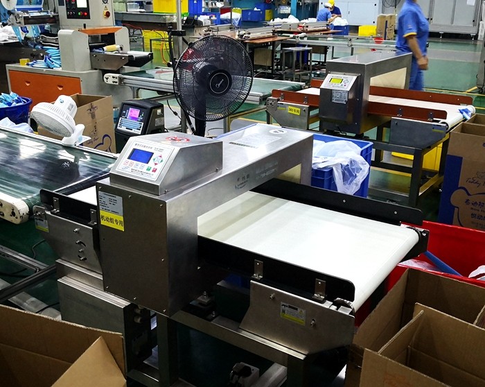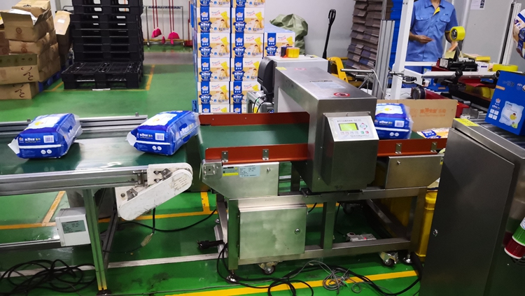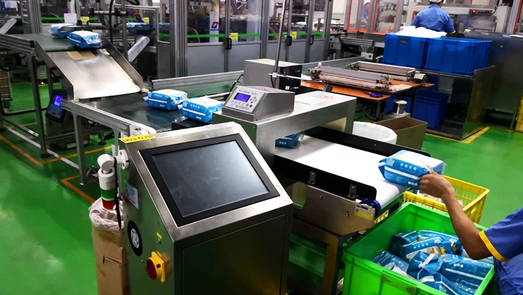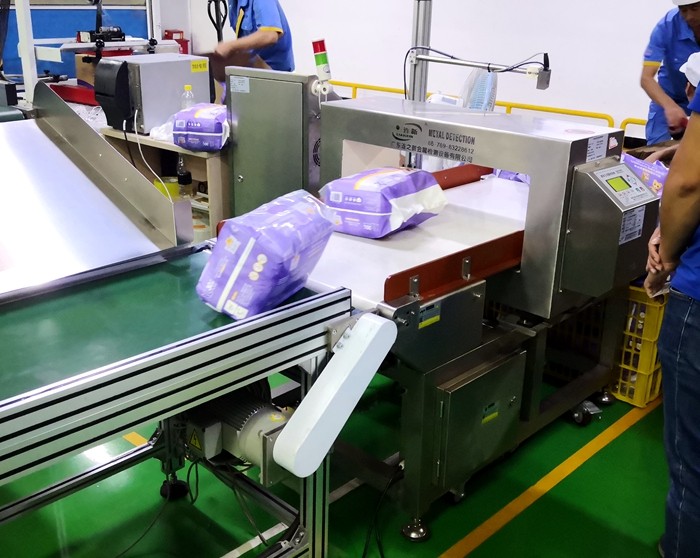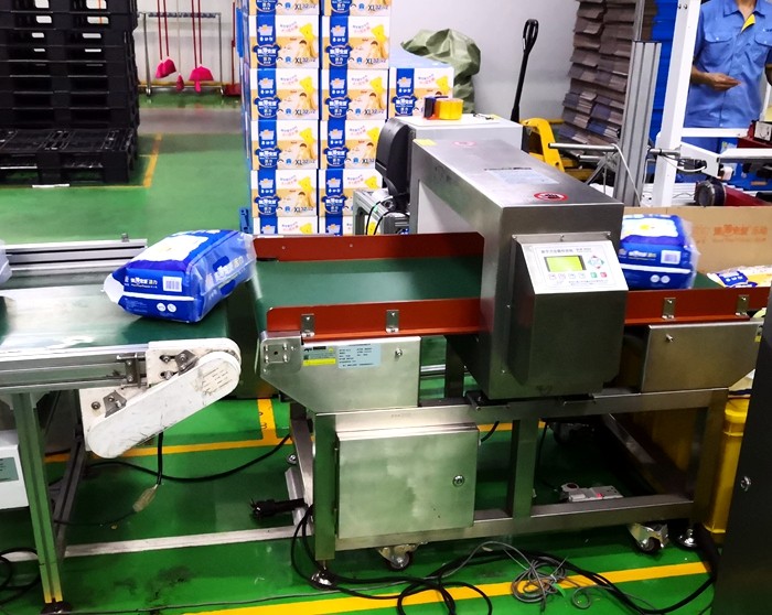 以下为汉氏卫生用品纸尿裤生产线使用连之新金属检测机的部分现场: