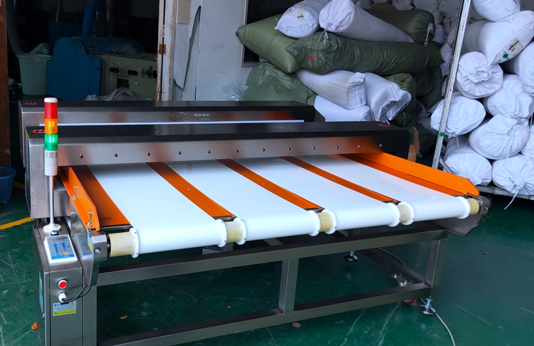 福建晋江某然化纤集团,因其纤维制品中偶尔会出现极细小的非铁金属丝,因此对金检机有极高的要求。经过多方考察,最终向我订购连之新1.7米宽幅金检机,用来检测所有的金属异物,铁、铜、铝、不锈钢都在检测范围。