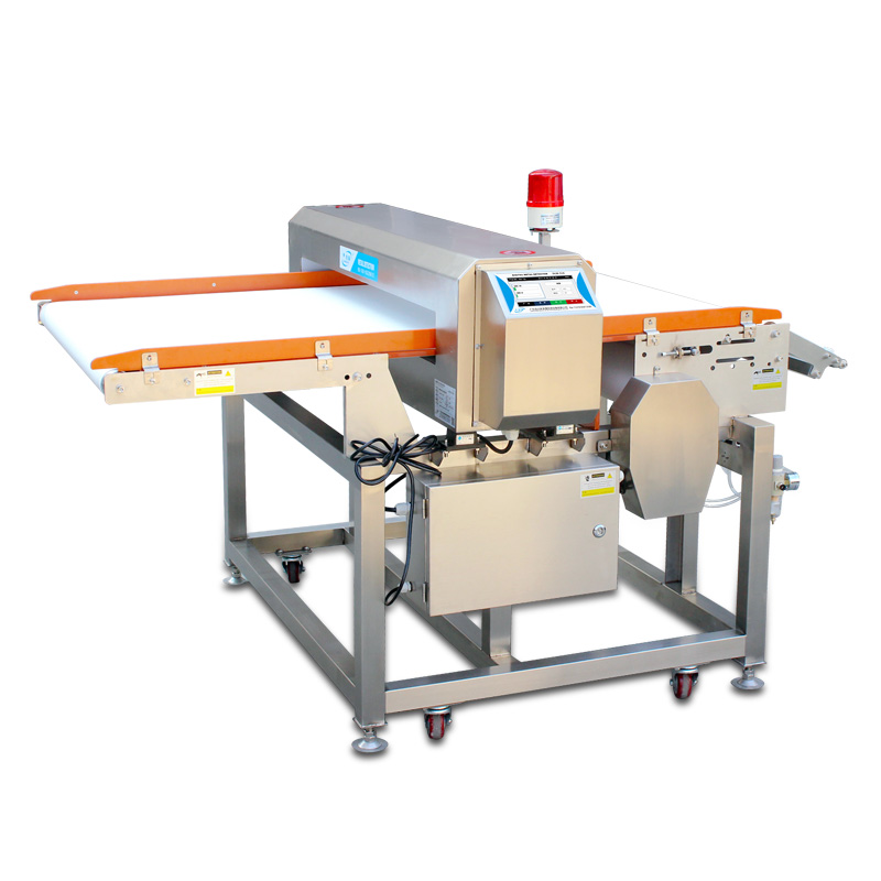7.检测仪报警方式:检测到金属异物报警并下沉输送带分流剔除。