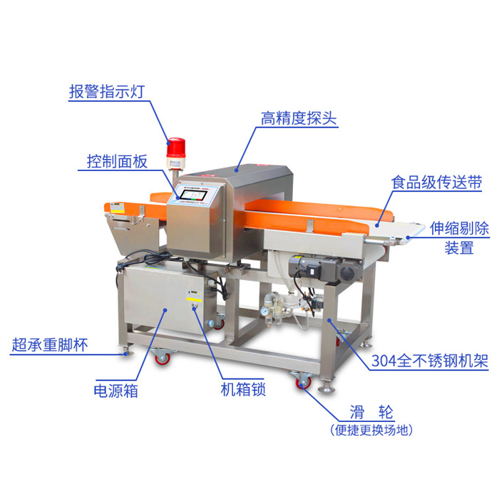 食品、玩具、服装、制鞋、制药、化工、皮革、针织等行业产品,用于检测各类产品或原料在生产加工过程中混入的金属杂质。如:铁及非铁磁性金属物品(铁、铜、铝、不锈钢等常见金属都可检测出)